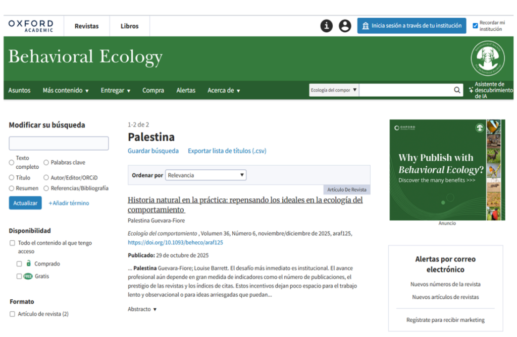 Behavioral Ecology, una revista científica de alto impacto