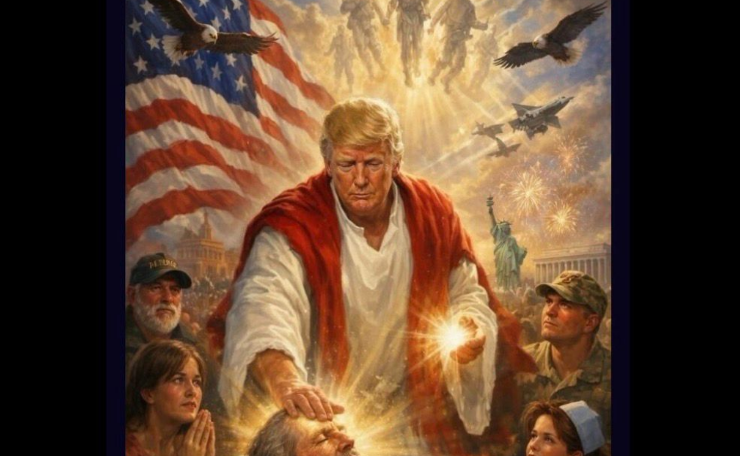 #HCHInternacionales | ¿Se compara con Jesús? Donald Trump publicó una imagen en su red social que roza el irrespeto al cristianismo y se autoretrata como Jesucristo sanador de los enfermos mientras personas a su alrededor parecen rendirse ante su poder.