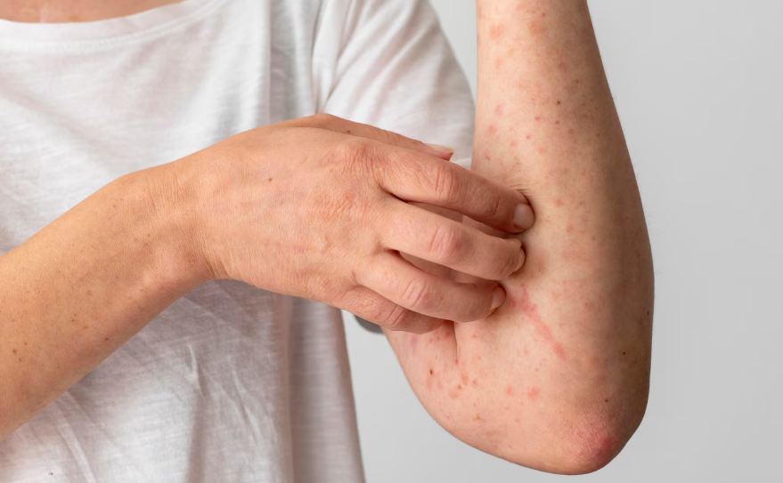 - Erupciones o manchas rojas en la piel
